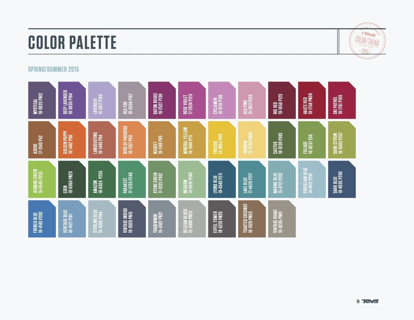 Teva is a footwear brand known for pioneering the sport sandal and blending outdoor functionality with laid-back style. I partnered with Teva through Blindspot Design, providing color, material, and print & pattern direction across seasonal collections. I developed color concepts grounded in consumer and market research, translating brand narratives into compelling product stories. I also pitched a flatform concept for the Original Universal sandal, which was added to the product line and later brought to life through a collaboration with Opening Ceremony.